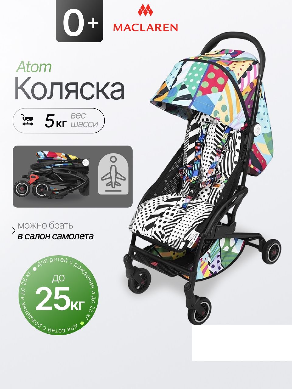 Дизайнерская Maclaren Atom Jason Woodside - это легкая и очень компактная коляска от компании MacLaren, специально подготовленная к летнему сезону. Благодаря новому механизму складывания и чрезвычайно компактным размерам после складывания Maclaren Atom можно разместить в багажном отделении салона самолета большинства авиакомпаний!